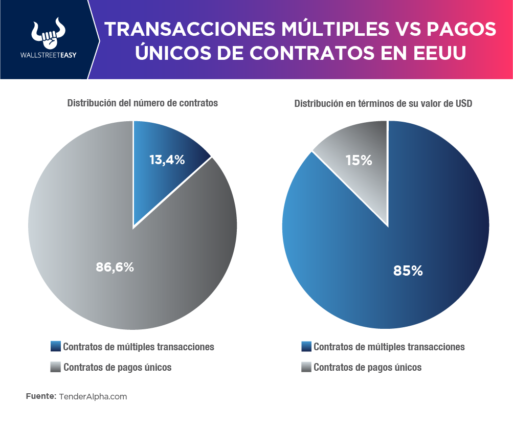 Si bien los contratos más importantes captan la atención de los medios de comunicación, la gran mayoría de las adjudicaciones de contratos no reciben cobertura de prensa. Además, el Sistema Federal de Adquisiciones de EEUU permite proyecciones de cuentas por cobrar futuras muy precisas, ya que, aunque son más pequeños, los contratos de múltiples transacciones representan casi el 90% del valor total en USD de las adjudicaciones federales realizadas anualmente.