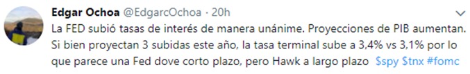 El pasado miércoles, 21 de marzo, la Reserva Federal (FED) de los Estados Unidos, anunció un aumento de las tasas de interés en 25 puntos básicos, quedando en un rango de entre 1,50% y 1,75%