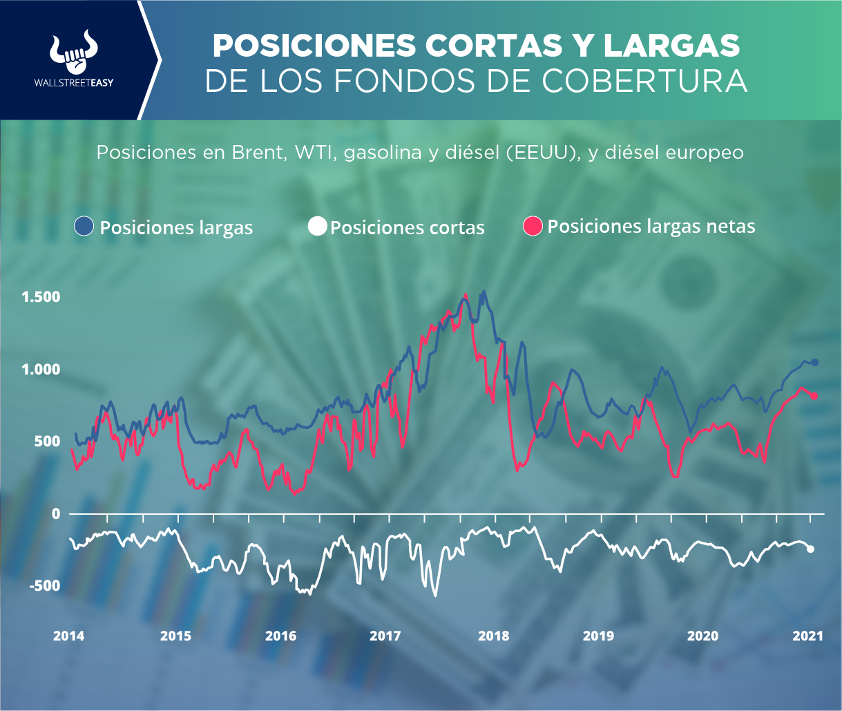 Con los fondos de cobertura ya muy invertidos en contratos petroleros, especialmente el crudo, y los precios superando los niveles previos a la pandemia, la afluencia de nuevas compras se ha desacelerado gradualmente en las últimas semanas. Algunos están obteniendo ganancias en antiguas posiciones largas o iniciando nuevas posiciones cortas, anticipando un pico temporal de precios.