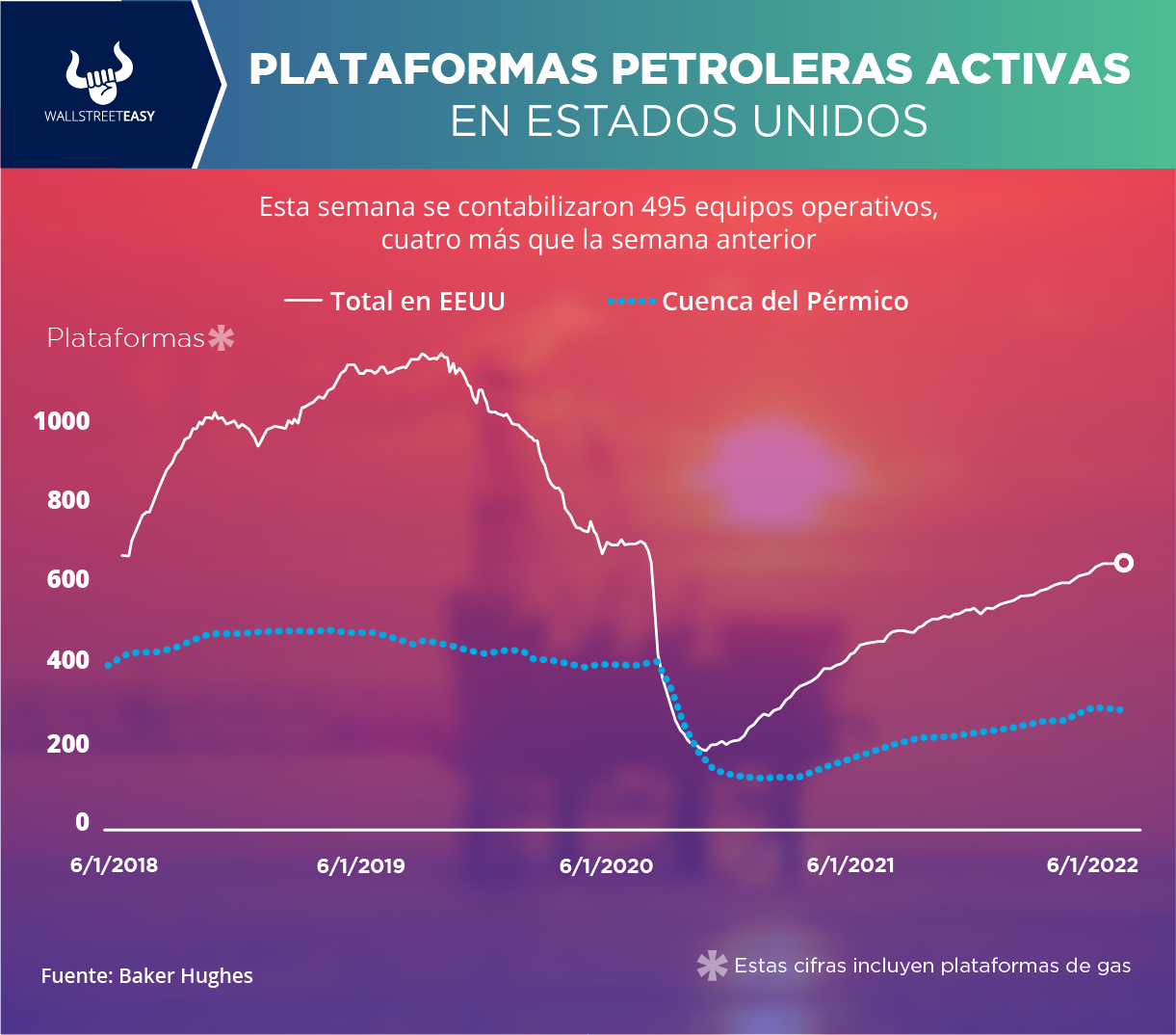 De acuerdo con información de Baker Hughes, actualmente en EEUU se encuentran 610 equipos activos (incluyendo los de gas). En la actividad petrolera se contabilizaron 495, cuatro más que la semana anterior. En las operaciones de gas hay 115 equipos operativos, dos más que hace siete días. Hace un año estaban activas 384 plataformas.