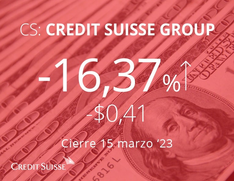 El desplome de las acciones del banco se interrumpió varias veces a lo largo de la mañana, cuando cayeron por debajo de los 2 francos suizos ($2,17) por primera vez. Las acciones que cotizan en bolsa suiza, cerraron la sesión con un descenso del -24%, recortando parte de sus pérdidas anteriores tras caer más del -30%. Los recibos de depósito estadounidenses de Credit Suisse cayeron -20%.