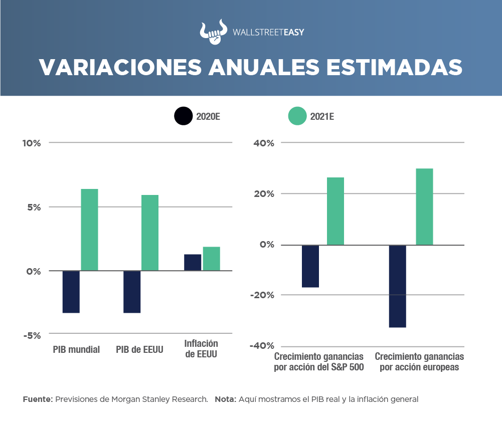 Según Morgan Stanley, la recuperación global es sostenible, y un punto muy importante para que esto se cumpla sería mantener la recuperación en V que comenzó en mayo de 2020, lo que llevaría a un crecimiento del PIB mundial del 6,4% en 2021, y una apreciación de los precios para una amplia gama de activos.