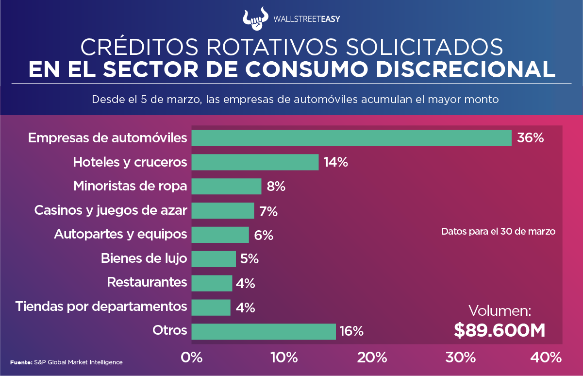 Desde el pasado 5 de marzo, las empresas en EEUU han recurrido a líneas de crédito rotativos por un monto de $160.600M, con el fin de apuntalar la liquidez en medio de la crisis del Coronavirus. Los fabricantes de automóviles han sido los más activos, con aproximadamente $32.000M. General Motors Corp. (GM) representa la mitad de esa cantidad.