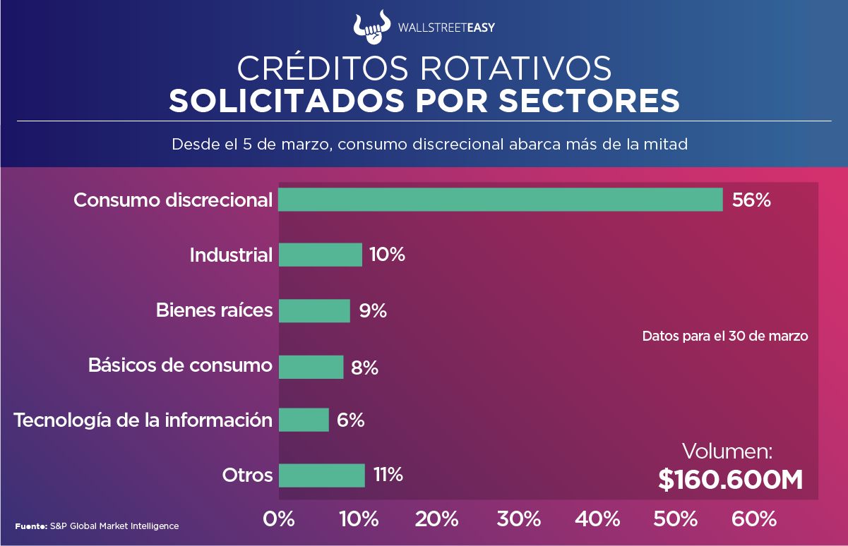 El sector de consumo discrecional tiene más de la mitad de los créditos rotativos, seguido por el sector industrial, con un segundo distante de 10%.