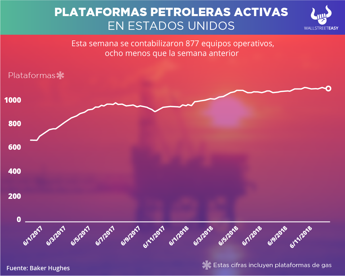 De acuerdo con información de Baker Hughes, actualmente en EEUU se encuentran 1.075 equipos activos (incluyendo los de gas). En la actividad petrolera se contabilizaron 877, ocho menos que la semana anterior. En las operaciones de gas hay 198 equipos operativos, el mismo número que hace siete días. Hace un año estaban activas 924 plataformas.