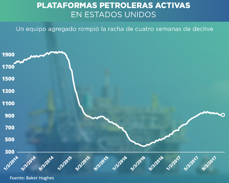 Según reportó Baker Hughes, la última semana, al 27 de octubre, se rompió la racha negativa de plataformas petroleras en declive.