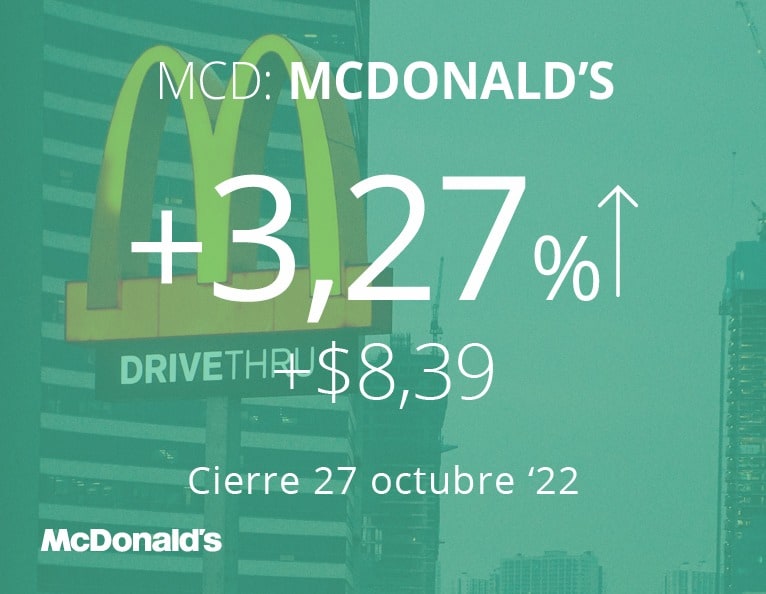Ayer jueves, 27 de octubre, las acciones de McDonald's ($MCD) cerraron al alza, después de que la empresa superó las estimaciones de Wall Street para sus ganancias e ingresos del tercer trimestre.