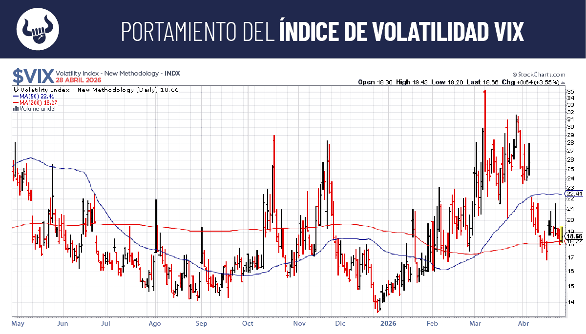 - El VIX sigue relativamente alto tras haber quebrado el nivel de 20