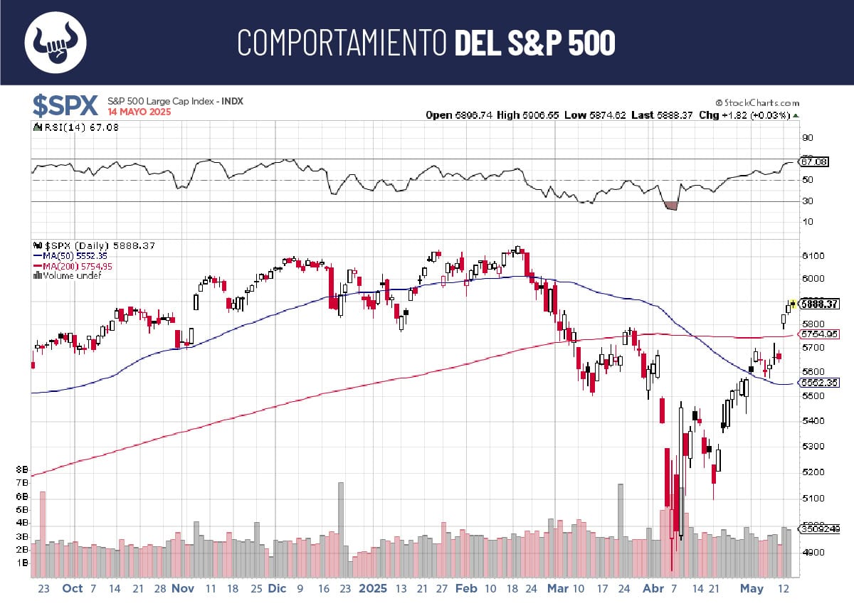 El S&P 500 experimentó una subida significativa gracias a las noticias de un posible acuerdo de mejora en los aranceles entre China y Estados Unidos, lo que provocó un fuerte rally.