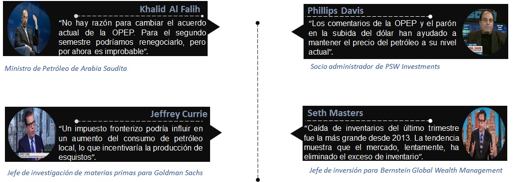- El ministro de energía saudita, Khalid al-Falih, expresó que ya salieron del mercado 1.5M de barriles diarios (bd).
