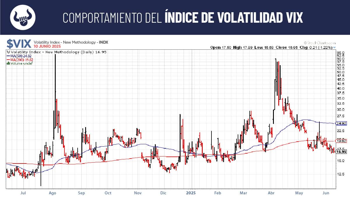 La baja y decreciente volatilidad sugiere un ambiente de complacencia en el mercado, aunque el VIX podría tener espacio para caer aún más.
