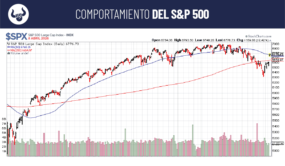 A pesar de la ráfaga de titulares pesimistas de los últimos días, el mercado ha demostrado ser notablemente resiliente. El cierre de ayer se situó nuevamente muy pegado al promedio móvil de 200 días, lo que sugiere que hay una base de compradores defendiendo ese nivel técnico crítico para evitar una corrección mayor.