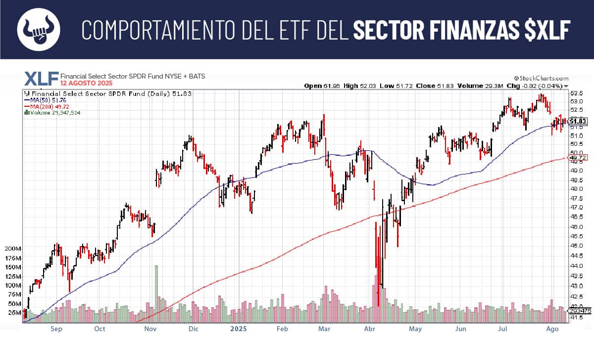El mercado también estará atento a lo que ocurra con el índice del sector finanzas, dado que está cerca de su promedio móvil de 50 días, lo cual implica una toma de ganancias de este sector con la expectativa de una desaceleración económica.