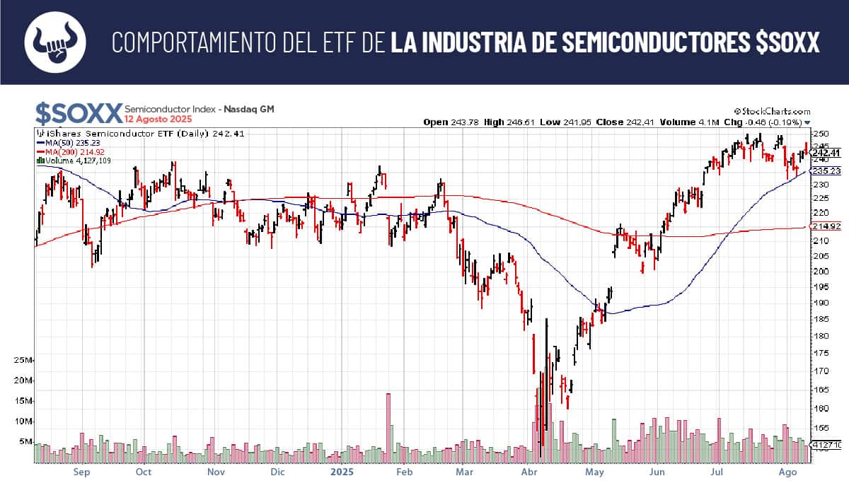 El índice de semiconductores ($SOXX) ha aguantado los últimos días varios intentos de toma de ganancia, y hay que mirarlo con mucha atención porque este ha sido uno de los catalizadores del sector tecnológico.