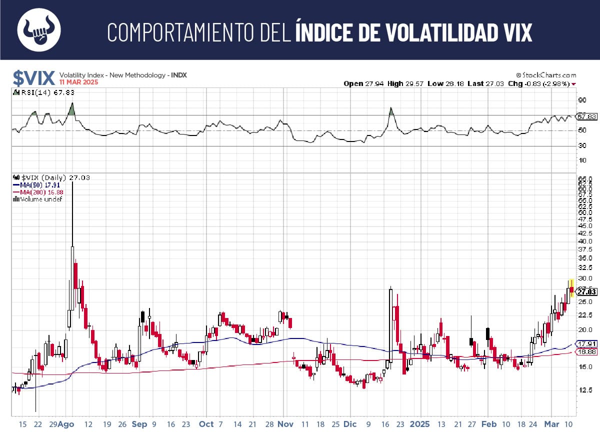 Esto se evidencia al observar el índice de volatilidad VIX, el cual se ubica actualmente en su punto más alto del año, tocando el valor de 30 en su valor intradiario más elevado. La continua volatilidad refleja la falta de claridad sobre cómo se resolverán las tensiones comerciales actuales.