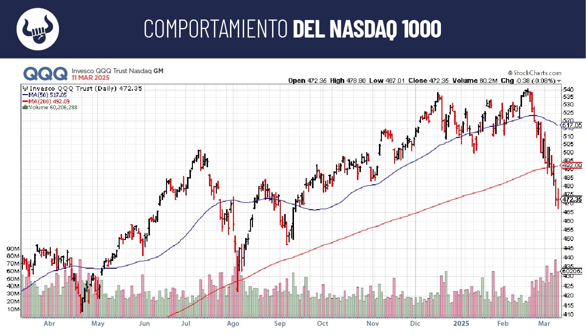 El sector tecnológico fue uno de los más afectados. El índice Nasdaq sufrió su peor día desde septiembre de 2022, con el ETF $QQQ cayendo 3,9%. Esta caída ha eliminado 12,4% de su valor desde su máximo histórico, borrando seis meses de ganancias en solo 13 días de negociación.