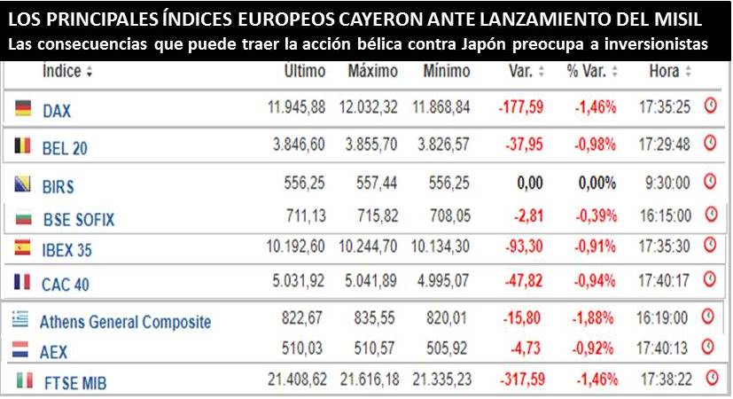 MERCADOS EUROPEOS TIEMBLAN POR MISIL COREANO