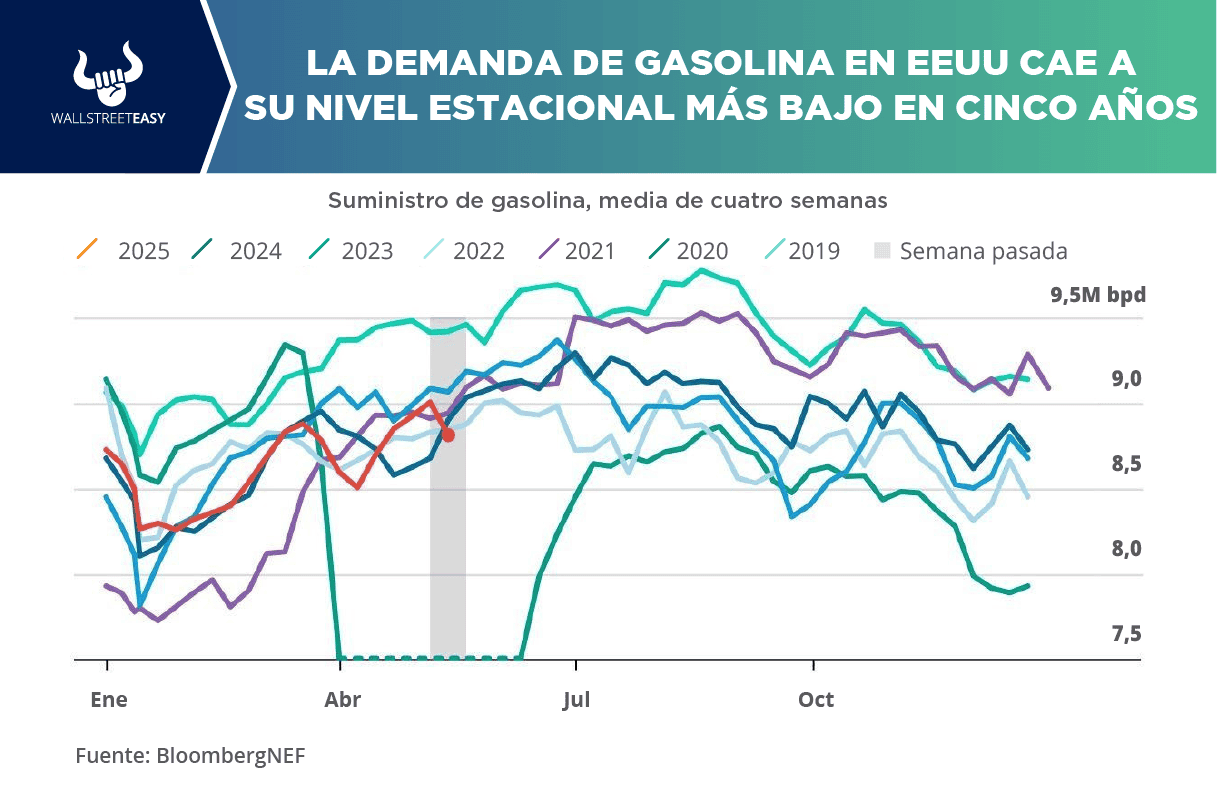 - Los inventarios de gasolina bajaron en 2,4M de barriles hasta llegar a 223,1M. Los analistas habían calculado una disminución de 528.000 barriles.
