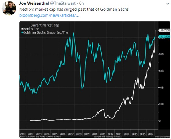 La capitalización de mercado de Netflix ha pasado por encima de la de Goldman Sachs