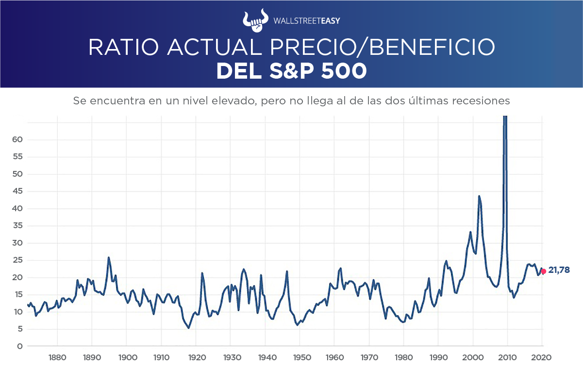 El ratio Precio-Beneficio (P/E) indica que estamos a niveles elevados, pero a los de 2007-2008, o 1999-2000, sino más bien parecido al de 2016. Es entendible que el P/E sea elevado, ya que tenemos un shock a corto plazo que en teoría se debería revertir en 2020. Más que una burbuja, parece un rally demasiado rápido y pronto, y puede causar confusión en los inversionistas.