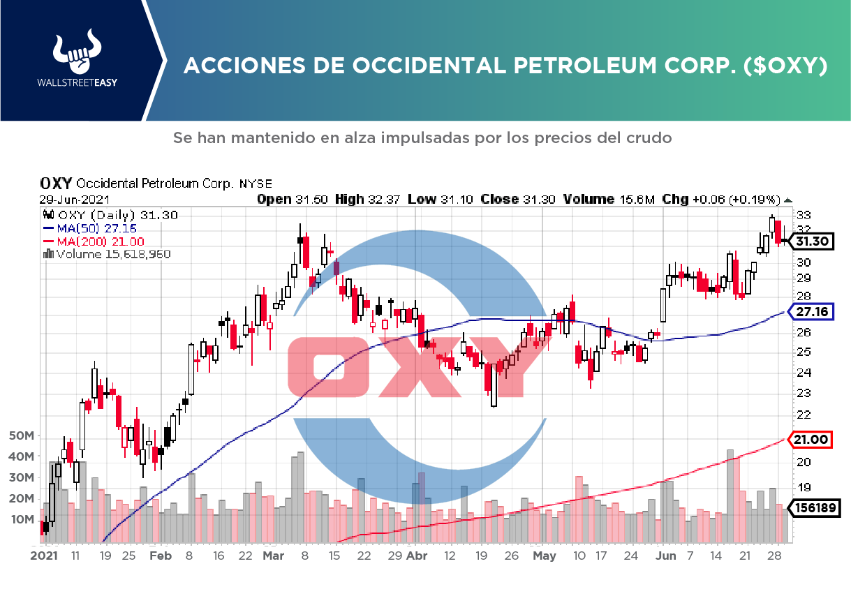 El analista de Morgan Stanley, Devin McDermott, subió la calificación de Occidental Petroleum de Equal-Weight to Overweight, y aumentó el precio objetivo de sus acciones de $32 a $40.