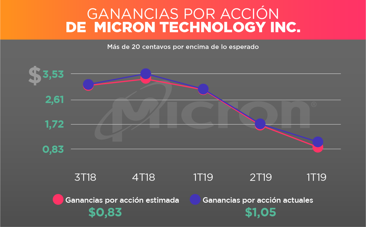 Las acciones de la compañía de almacenamiento y memoria, Micron, subieron hasta un +10% el martes, luego de que la compañía superara las expectativas de los analistas: