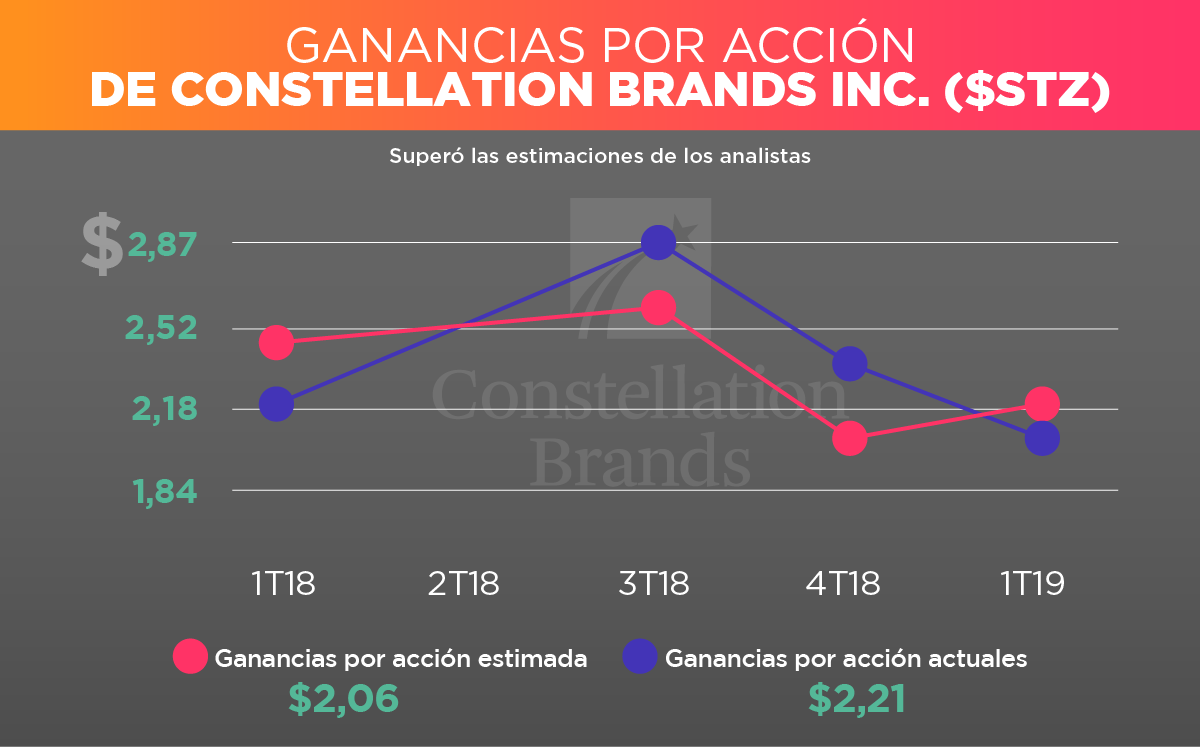 Las acciones de Constellation Brands subieron el pasado viernes después de que la cervecera reportara ganancias que superaron las estimaciones, y por mejorar sus perspectivas para el año fiscal 2020:
