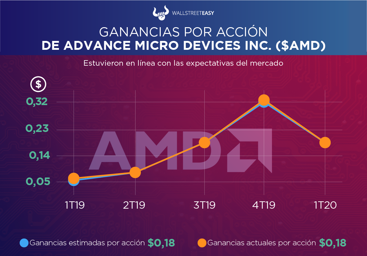 - Para el segundo trimestre, AMD espera ingresos entre $1.750M a $1.950M, en línea con la estimación promedio de los analistas de $1.880M. De los 40 analistas que cubren la compañía, 18 tienen calificaciones de sobrepeso o de compra, 19 tienen calificaciones de espera y tres tienen calificaciones de venta, según FactSet.
