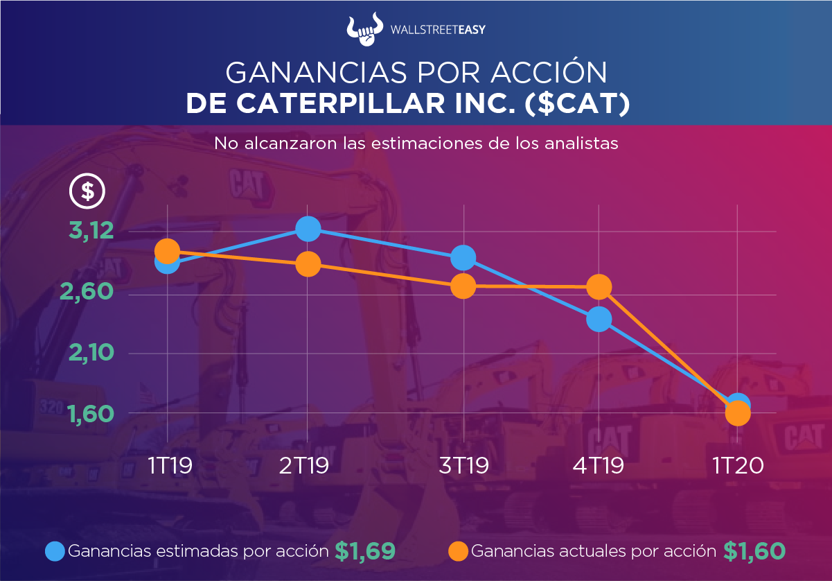- Las acciones de Caterpillar cayeron –22% este año, ya que experimentó una caída en las ventas de máquinas en medio de las paradas provocadas por el Coronavirus. La compañía dijo que no está proporcionando una perspectiva financiera para 2020 dada la «continua incertidumbre económica mundial».