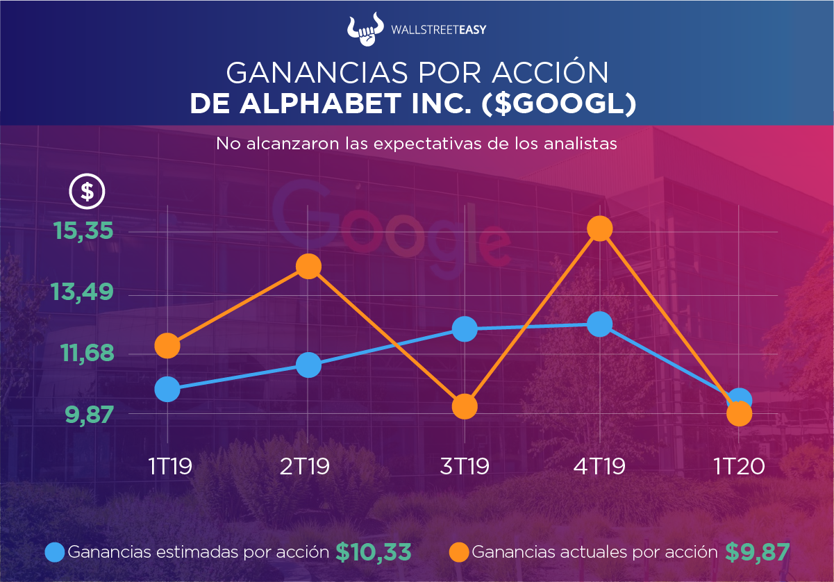- La empresa matriz de Google reportó ganancias de $6.840M, o $ 9,87 por acción, en comparación con $6.660M, o $9,50 por acción del mismo período del año anterior. Los ingresos crecieron a $33.700M de $29.480M en el mismo período del año anterior. Los analistas habían estimado $10,71 por acción sobre ingresos de $33.320M.