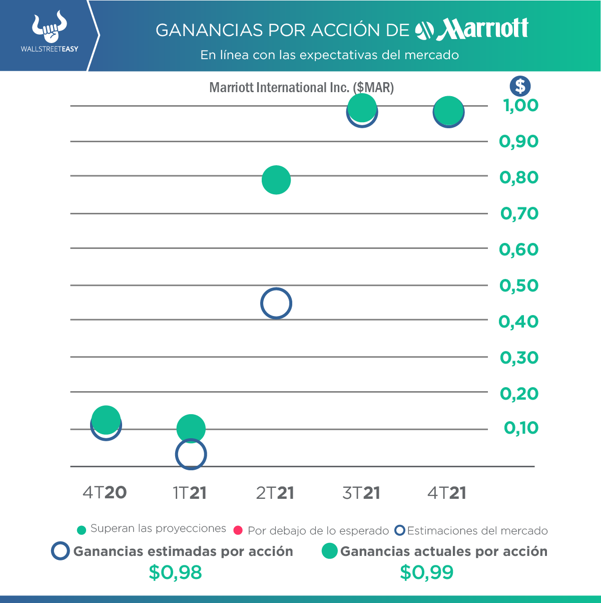 - La cadena hotelera anunció ganancias por acción de $0,99 sobre ingresos de $3.950M. Los analistas anticiparon $0,98 en ganancias por acción e ingresos de $3.710M.