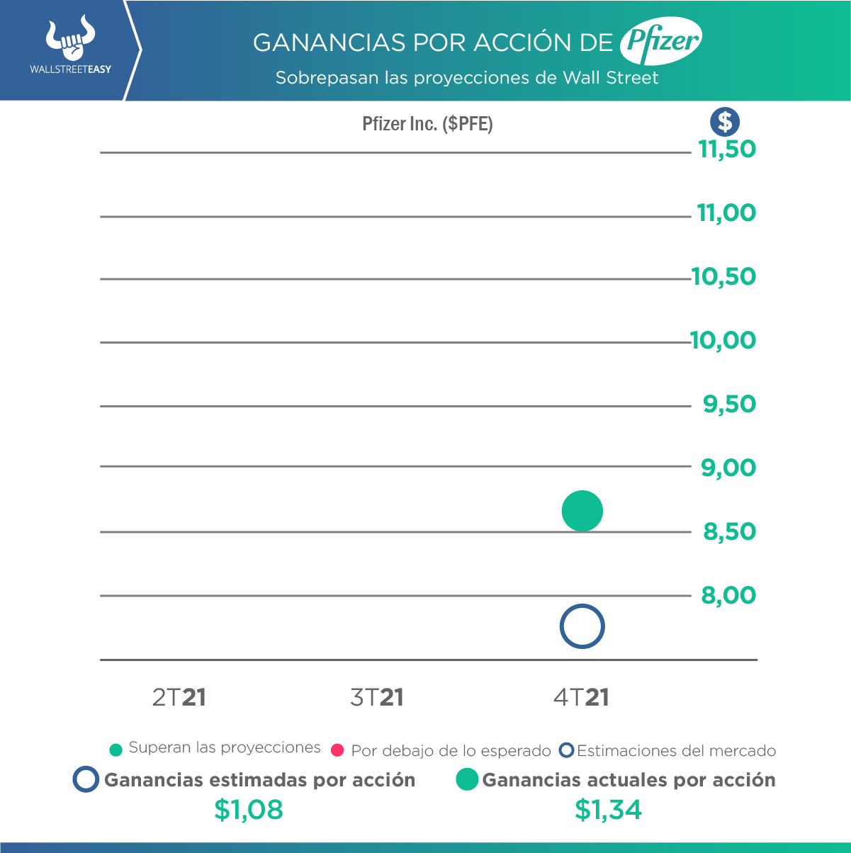 - La compañía espera ventas de vacunas durante todo el año en alrededor de $36.000M, lo que refleja las 2.300M de dosis que se espera qu entreguen en el año. Pfizer elevó su orientación general para todo el año y ahora espera que las ganancias por acción oscilen entre $4,13 y $4,18, en comparación con la orientación anterior de $3,95 a $4,05.