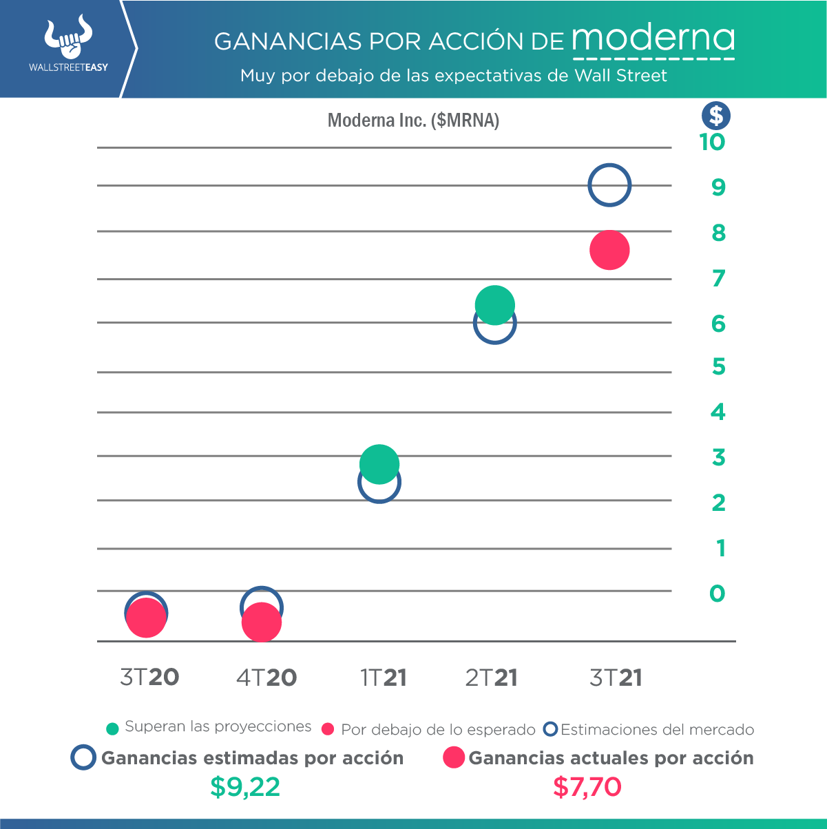 - Moderna dijo que las ventas de su vacuna contra el COVID-19 ascendieron a $4.800M millones, mucho menos de los $5.800M que esperaban los analistas de Wall Street. Los ejecutivos mencionaron los «desafíos de la ampliación» en el trimestre, a medida que la empresa aumentó las entregas en todo el mundo.