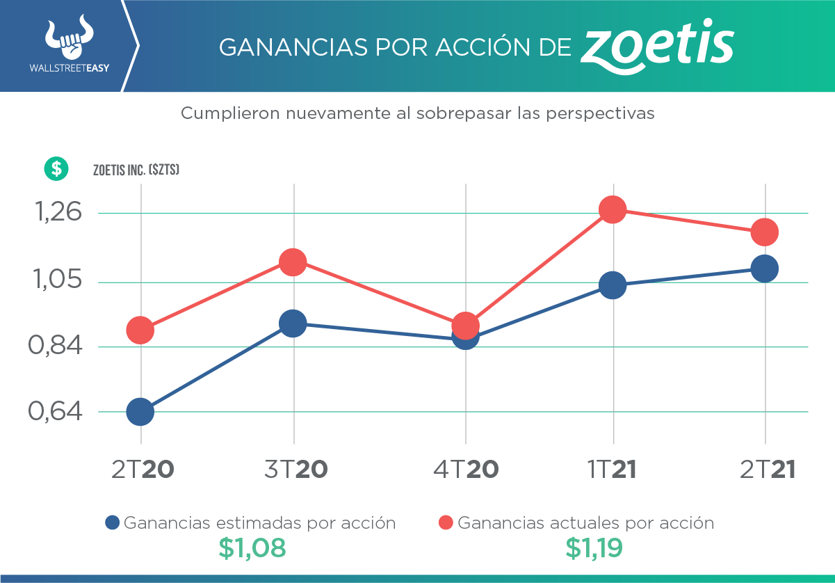 - Zoetis dijo que espera ganancias para todo el año fiscal de $4,47 y $4,55 por acción sobre una base ajustada. Anteriormente estimaba ganancias de $4,42 a $4,51 por acción. Y además, ingresos entre $7.625M y $7.700M, un aumento a la proyectado anteriormente de $7.500M a $7.625M.