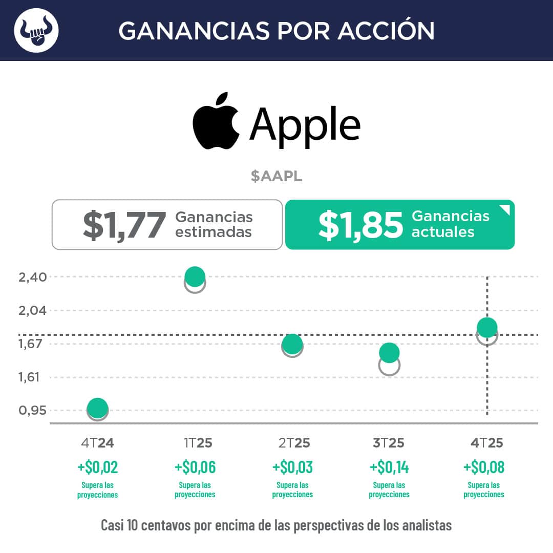 - Las ganancias ajustadas por acción del gigante tecnológico, de $2,87 para el tercer trimestre, también superaron los $2,26 previstos y las ganancias de la empresa en el mismo periodo del año anterior, que fueron de $2,12.
