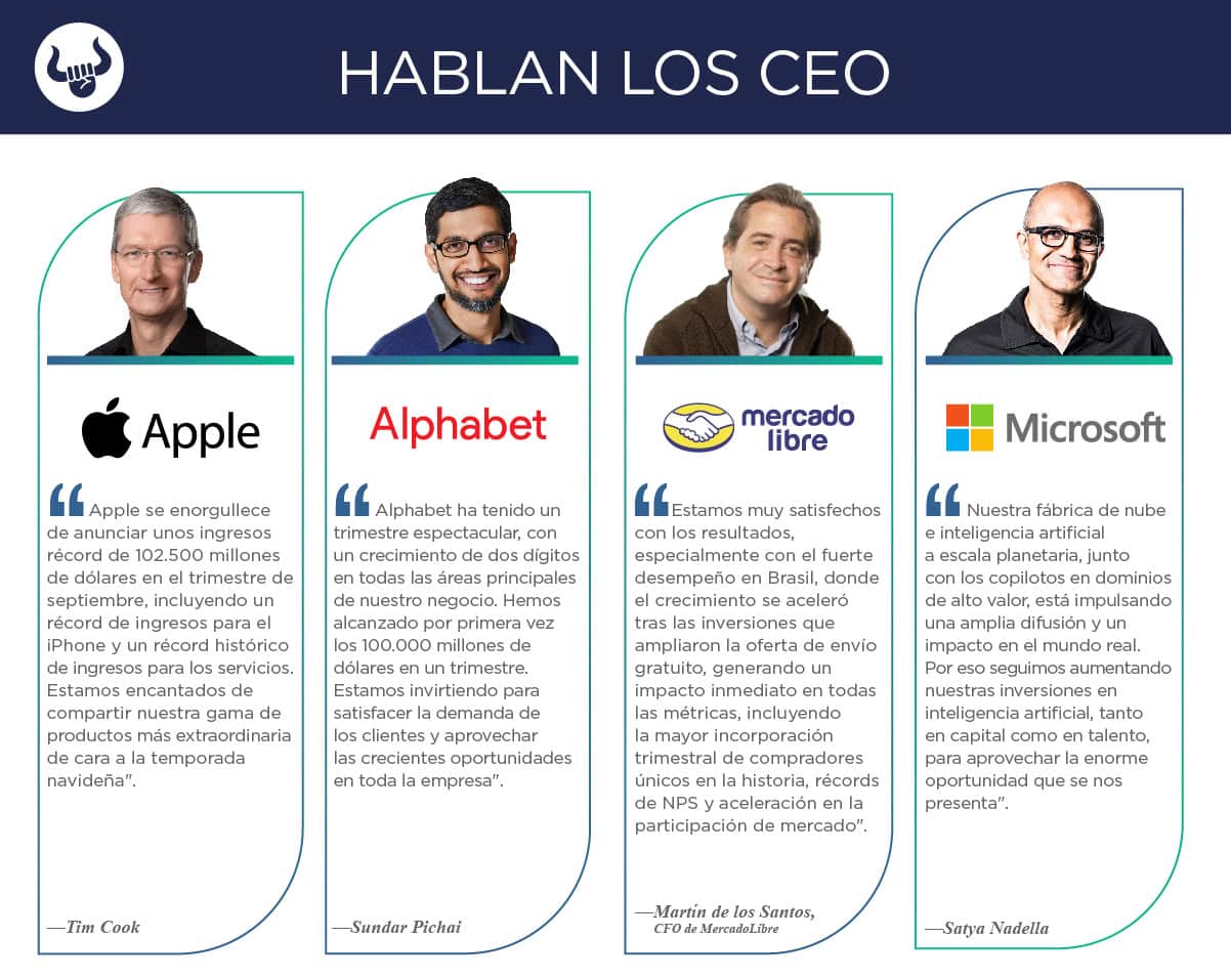 - El gigante tecnológico reportó ingresos de $102.400M para el trimestre que finalizó el 30 de septiembre, superando los $99.850M que esperaban los analistas y aumentando con respecto a los $88.300M del mismo periodo del año anterior.