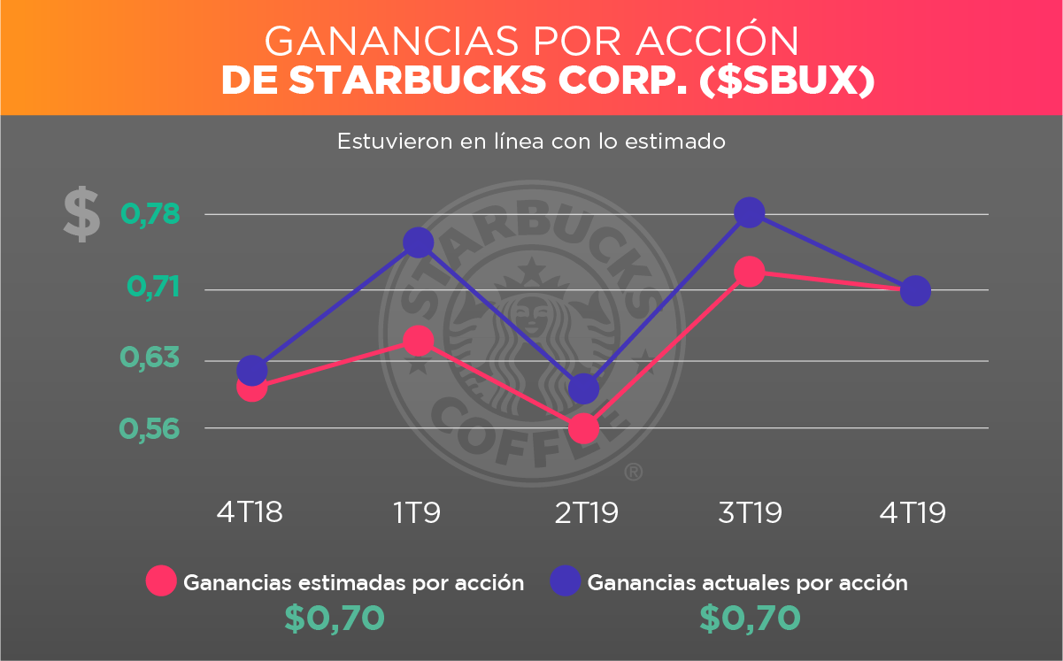 Las acciones de Starbucks cotizaron al alza el pasado jueves luego de que la cadena de café más grande del mundo mostrara una sólida guía de crecimiento de ingresos en su año fiscal 2020, después de cumplir con los pronósticos de ganancias gracias a mejores ventas: