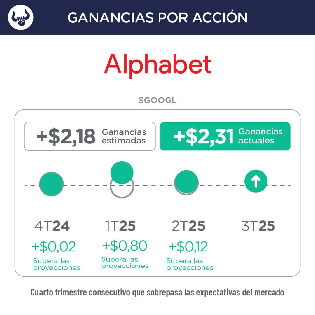 - El gigante de internet obtuvo unos ingresos de $96.430M frente a los $94.000M previstos, y un beneficio por acción de $2,31 por encima de los $2,18 esperados.
