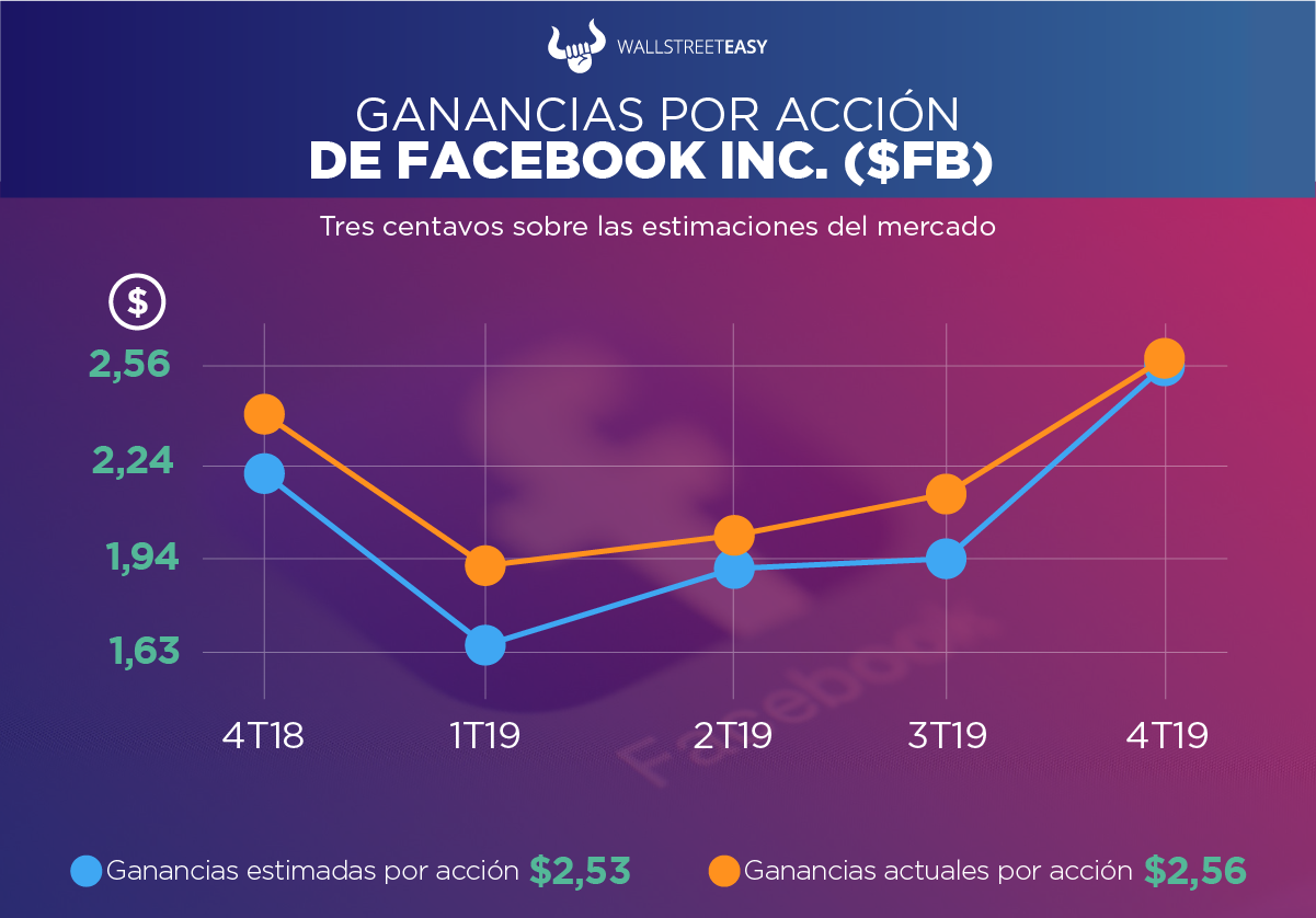 • Las ganancias por acción fueron de $2,56, que superaron por tres centavos las estimaciones. Los ingresos de $21.080M estuvieron un poco por debajo de los $20.890M pronosticados. Los usuarios activos diarios de 1.660M superaron las proyecciones de 1.650M; mientras que los usuarios activos mensuales cumplieron con los 2.500M esperados. Los ingresos promedio por usuario sobrepasaron las expectativas: $8,52 vs. $8,38.
