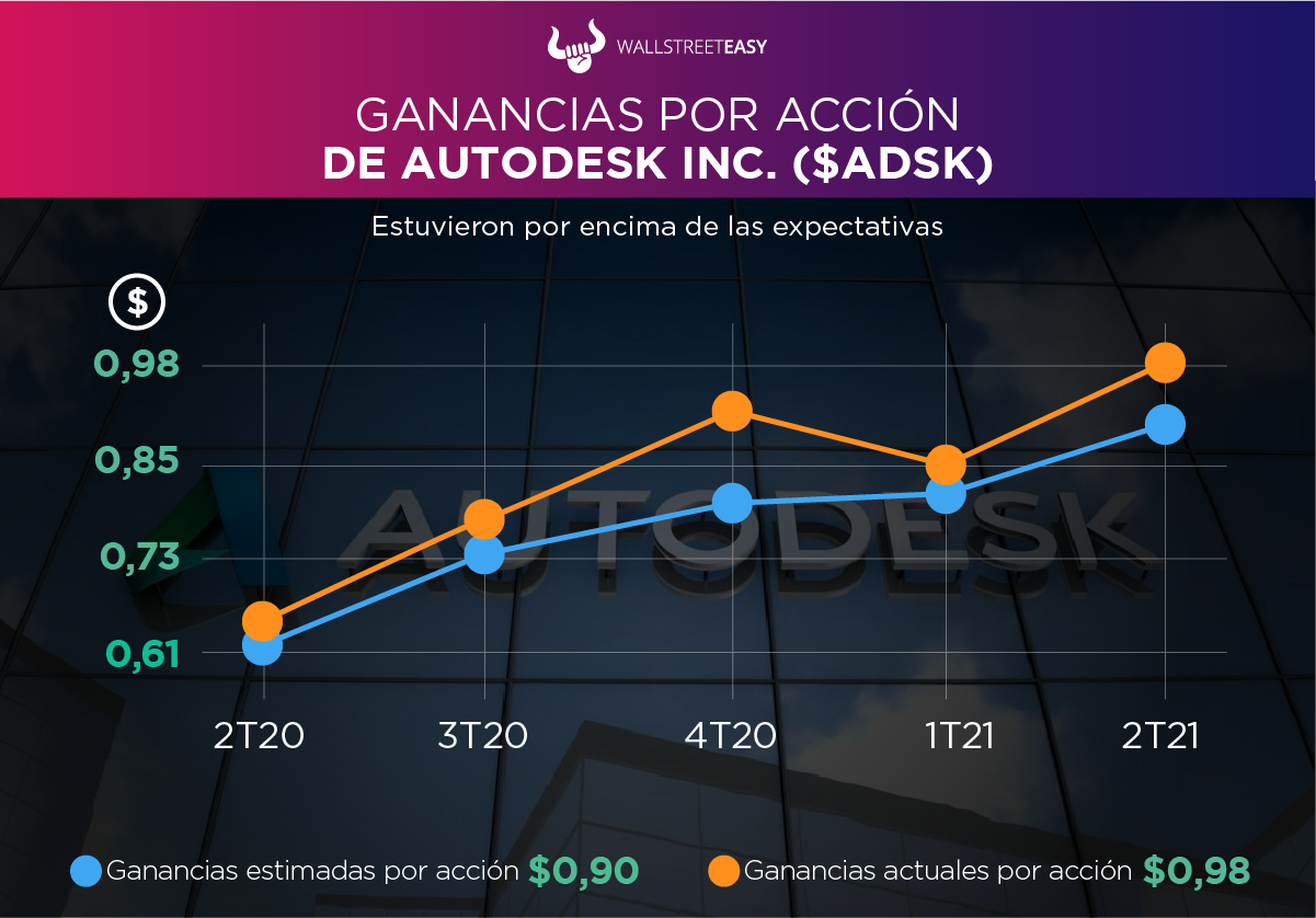 - La empresa anunció que aumentaron su vista de ingresos del año fiscal 2021, entre $3.715M y $3.765M, desde $3.675M a $3.775M, aunque está un poco por debajo de las estimaciones de $3.860M. «Logramos un segundo trimestre sólido como resultado de nuestro modelo comercial resistente y la naturaleza estratégica de nuestros productos», dijo su CEO, Andrew Anagnost.