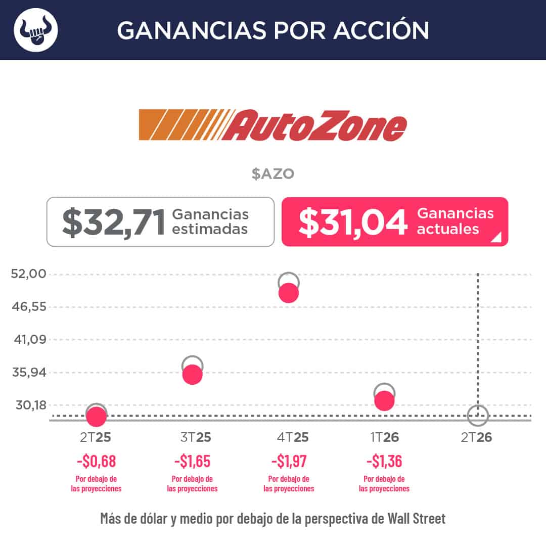 - La cadena de repuestos y accesorios para automóviles dijo que los ingresos aumentaron 8,2% con respecto al año anterior, hasta los $4.600M ($4.640M estimados), las ganancias por acción se situaron en $31,04, por debajo del año pasado y, no alcanzó la estimación de $32,71.