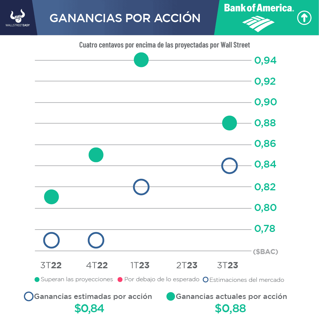 - El banco obtuvo beneficios de 88 centavos por acción, frente a los 84 centavos por acción que esperaba Wall Street, e ingresos de $25.330M, que estuvieron por encima de las proyecciones de $25.050M.