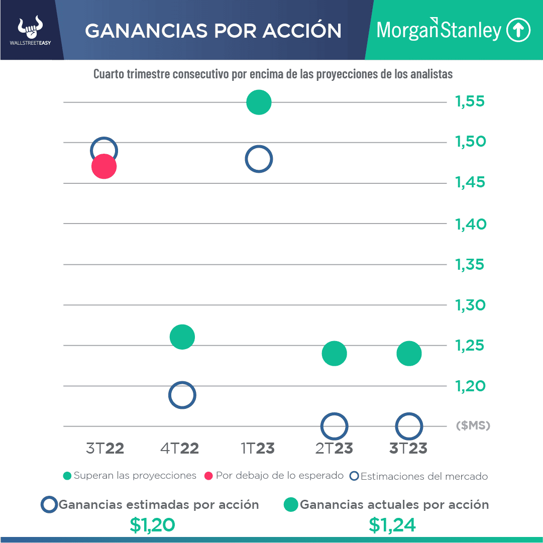 - La mejora trimestral fue suficiente para impulsar las acciones de Morgan Stanley +6,5%, poniéndolas en camino de su mayor ganancia porcentual desde el 9 de noviembre de 2020.