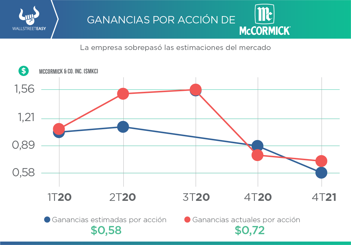 - «Estamos capitalizando la aceleración de las tendencias de los consumidores, en particular el cambio sostenido hacia cocinar más en casa, un mayor compromiso digital, una alimentación limpia y sabrosa, y marcas confiables, que estamos seguros que continuarán persistiendo incluso más allá de la pandemia», dijo el CEO de McCormick, Lawrence E. Kurzius.