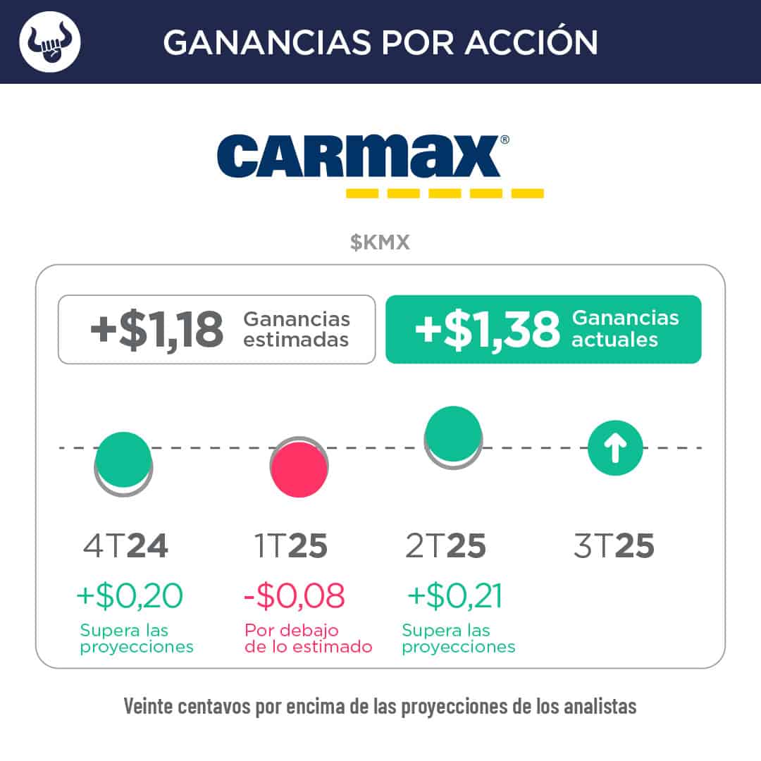 - El mercado ha mostrado su fortaleza a medida que los vehículos nuevos se enfrentan a subidas de precios en medio de los aranceles y el fin de los incentivos a la venta basados en aranceles. Las acciones de CarMax han perdido alrededor de 21,3% desde principios de año, frente a la subida del 1,7% del S&P 500.