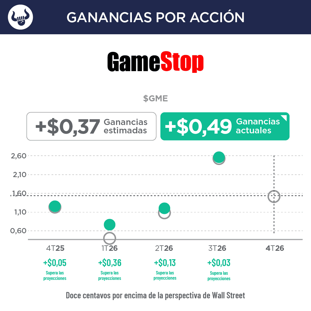 • GameStop registró una caída en las ventas de hardware y accesorios, que incluyen videojuegos nuevos y de segunda mano, hasta alcanzar los $535,6M en el cuarto trimestre, frente a los $725,8M del mismo periodo del año anterior. Informó de un beneficio neto de $127,9M, en comparación con los $131,3M del año anterior.