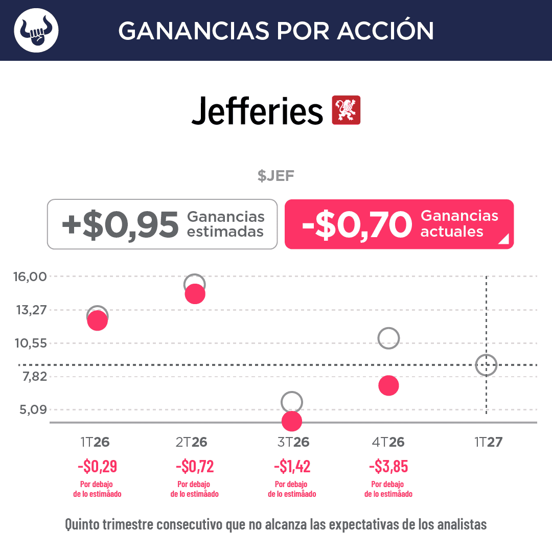 • Jefferies recompró 3M de acciones por $174M durante el trimestre y declaró un dividendo trimestral de $0,40 por acción.