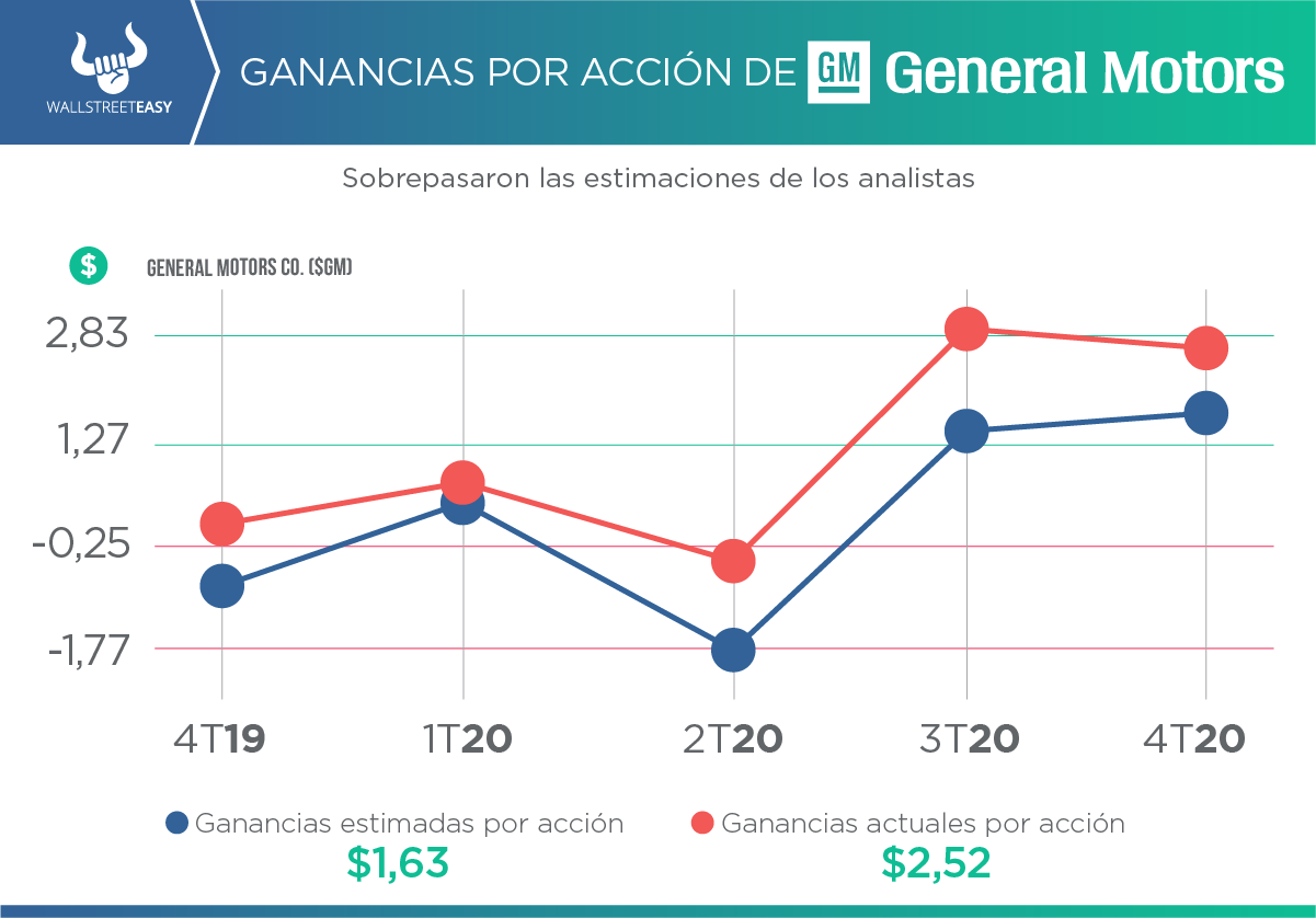 • Las ganancias del cuarto trimestre de GM superaron fácilmente los resultados del año anterior, que se vieron afectados negativamente por una huelga laboral en EEUU que interrumpió la producción de vehículos durante el 4T19.