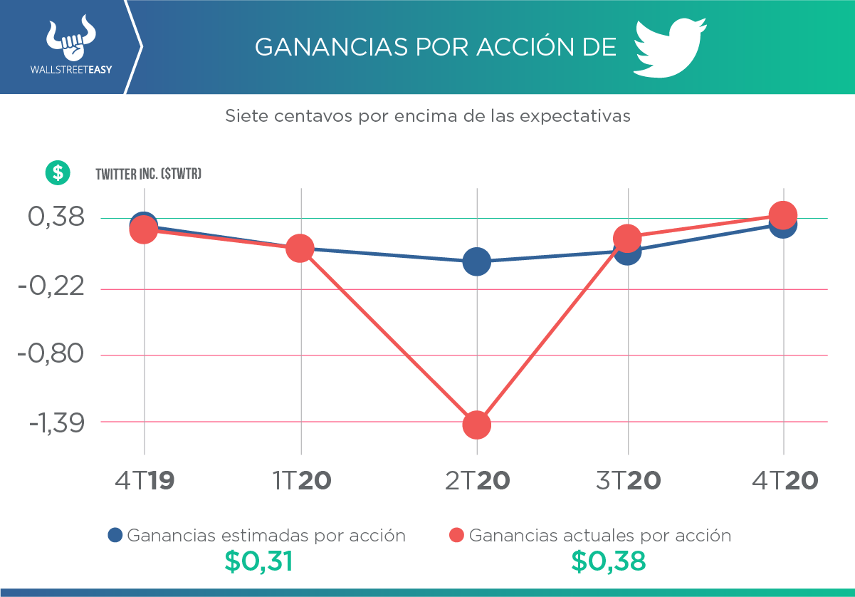 • Twitter indicó que espera ingresos entre $940M y $1.040M en el trimestre actual, mientras que los analistas esperaban una guía de $965M en promedio.