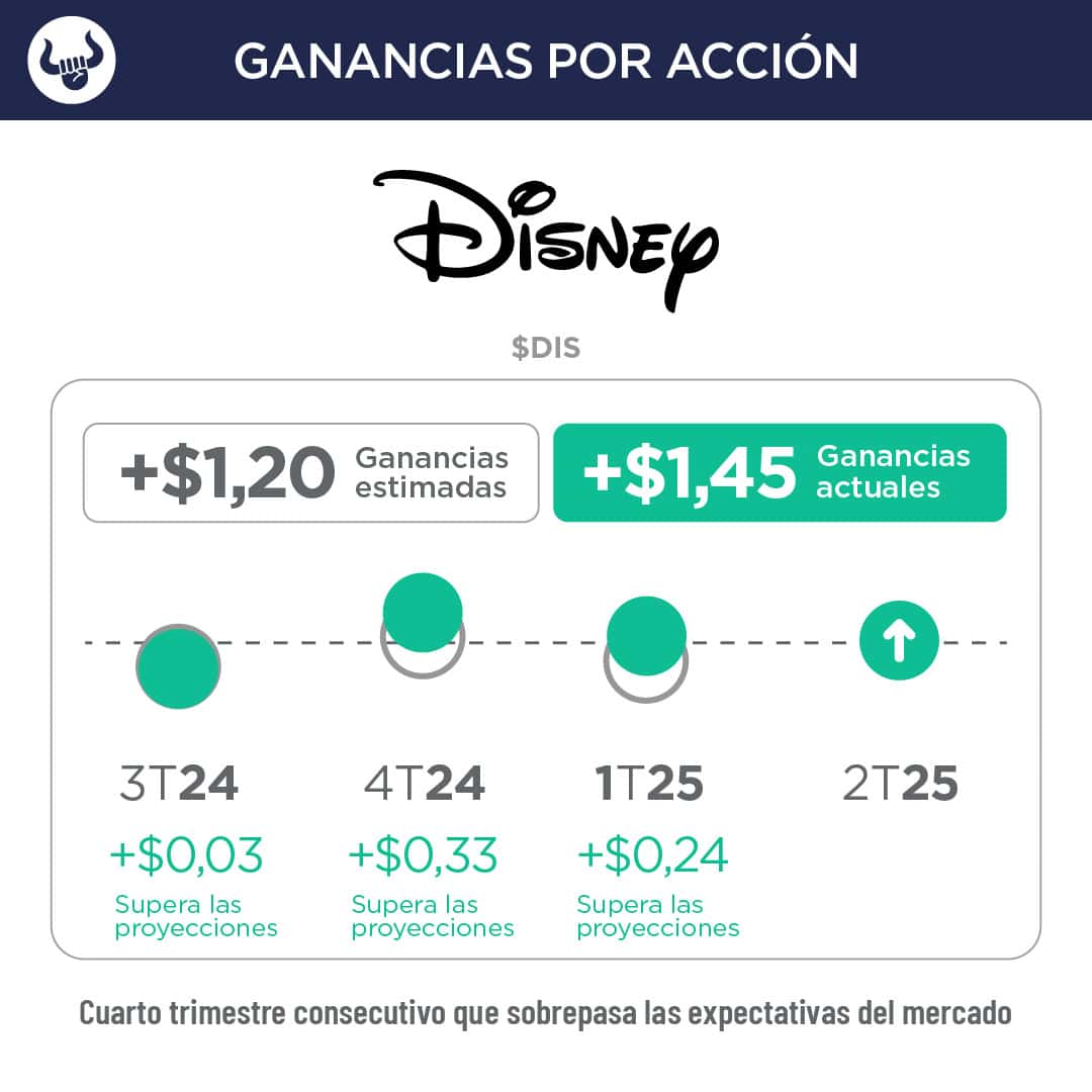 - Disney espera ahora un beneficio por acción ajustado para todo el año de $5,75, un aumento del 16% en comparación con el ejercicio fiscal 2024. Anteriormente, la compañía dijo que esperaba un crecimiento ajustado de un solo dígito.